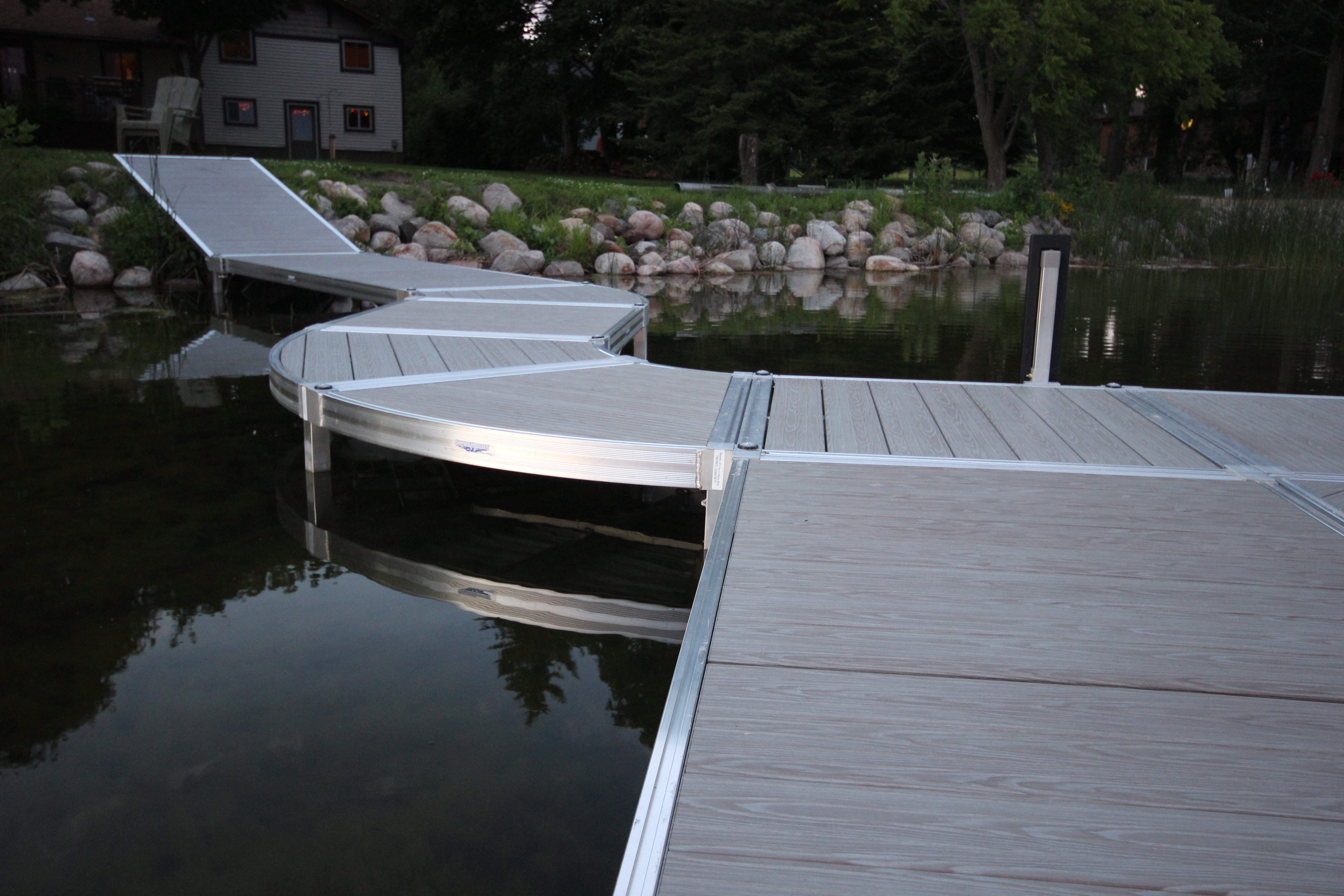 | Only Curved Frames & Decking on the Market Create winding walkways, curved fishing decks, or sun platforms. Exclusive 45° and 90° curves let your dock follow the shoreline. |